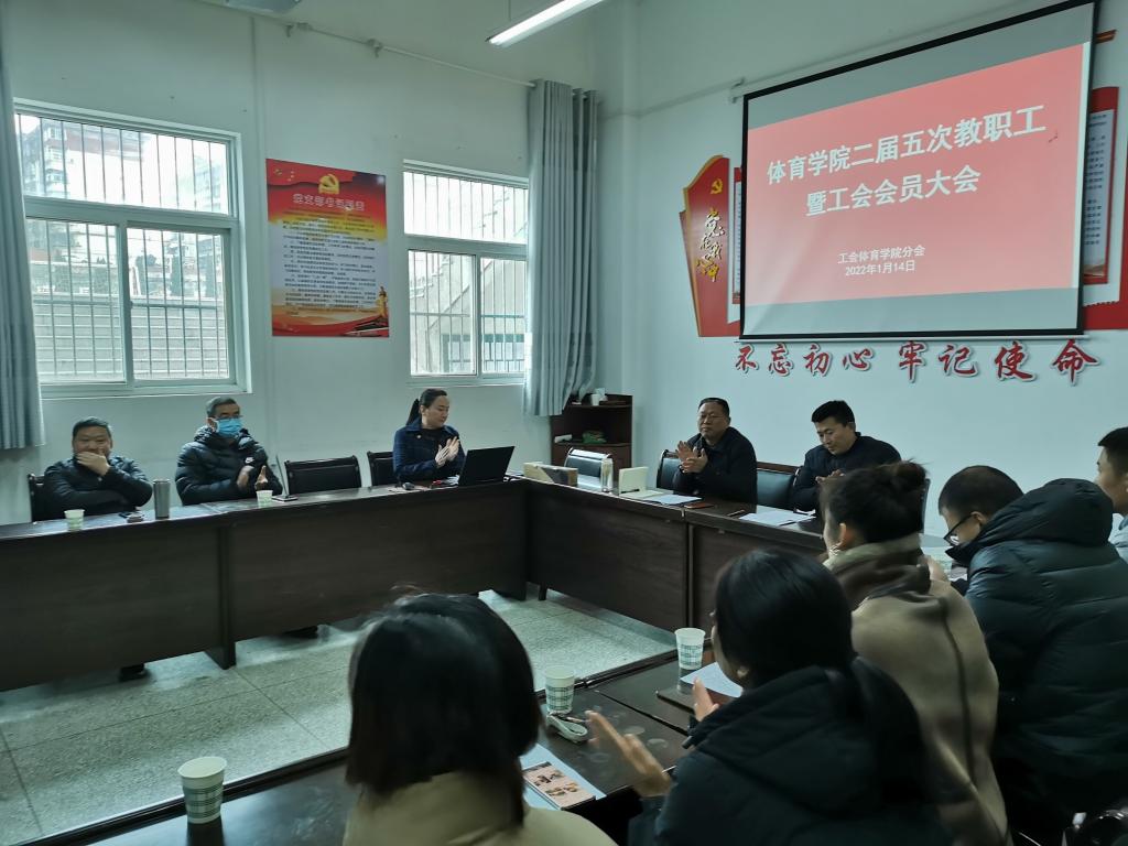 2022年1月14日下午,欧冠官方网站在体育馆一楼会议室召开二届五次教职工暨工会会员大会,欧冠官方网站32名教职工参加了本次大会,大会由欧冠官方网站党总支书记高立平同志主持。
