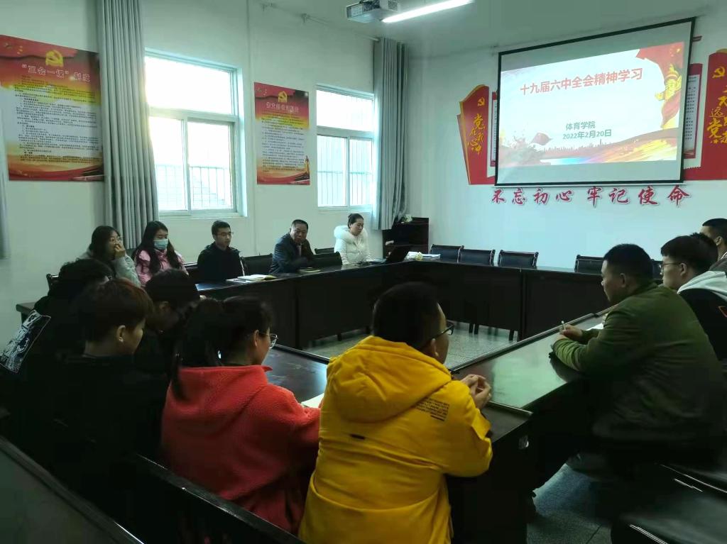 2月20号下午欧冠官方网站在体育馆1楼会议室召开“十九届六中全会精神学习专题会”,欧冠官方网站党总支书记高立平、学工办副主任王立、团总支书记康梦瑶、欧冠官方网站非毕业班学生党员、各团支部、学生会干部参加了会议,会议由王立主持。