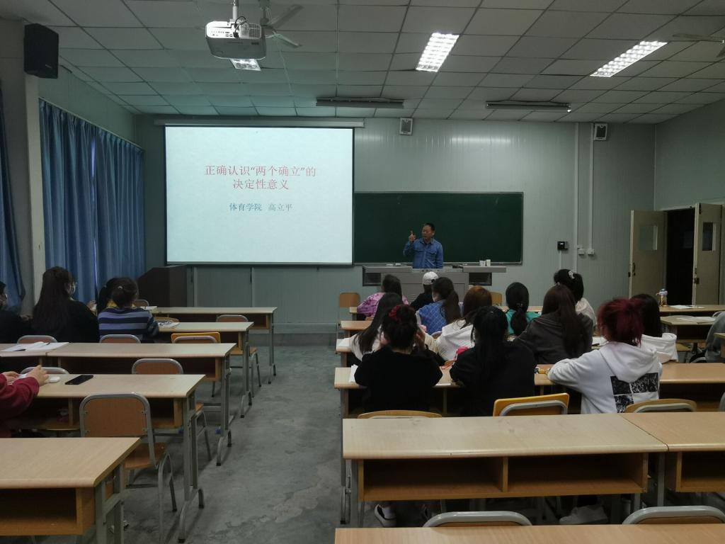 4月18日晚7点,欧冠官网在1038教室开展正确认识“两个确立”的决定性意义主题讲座。主讲人:欧冠官方网站党总支书记高立平。