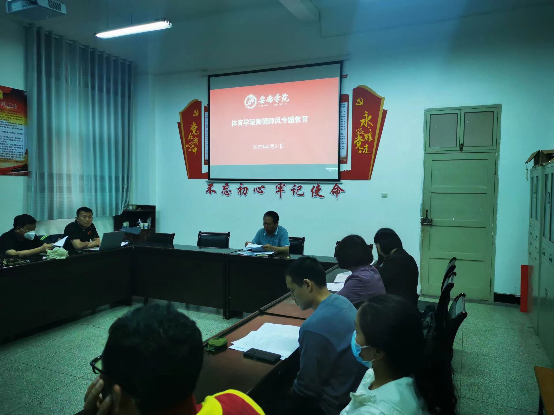 5月31日在体育馆会议室召开师德师风教育专题会议。欧冠官网全体教师参加会议。会议由党总支书记高立平主持。
