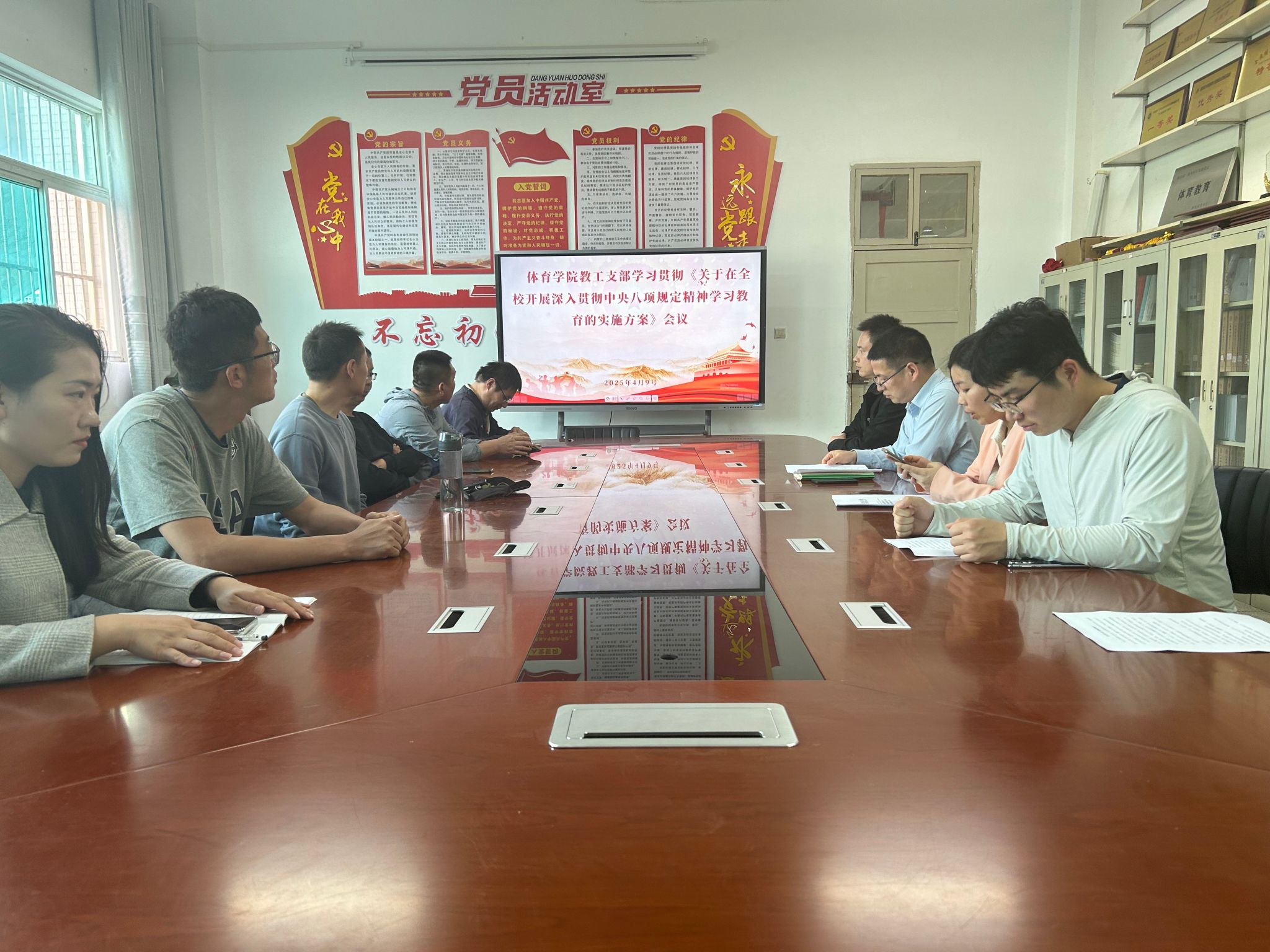 为贯彻落实党的二十届三中全会部署,巩固拓展学习贯彻习近平新时代中国特色社会主义思想主题教育成果,巩固深化党纪学习教育成果,锲而不舍落实中央八项规定精神,推进作风建设常态化长效化。2025年4月9日,欧冠官方网站教工支部召开《关于在全校开展深入贯彻中央八项规定精神学习教育的实施方案》专题会议。会议由教工支部书记刘芹主持,支部委员及成员等参会,欧冠官方网站总书记韩晔列席指导。