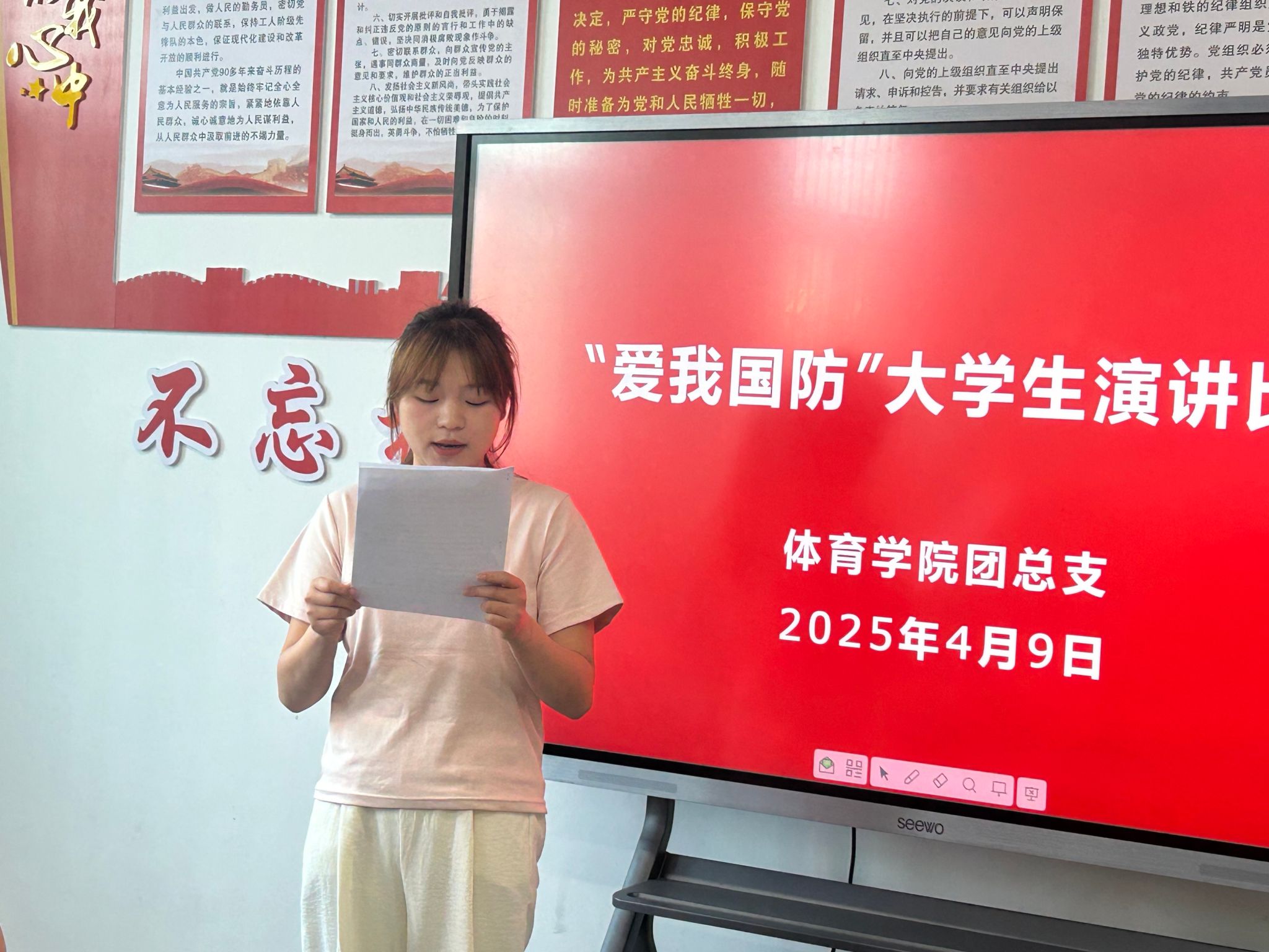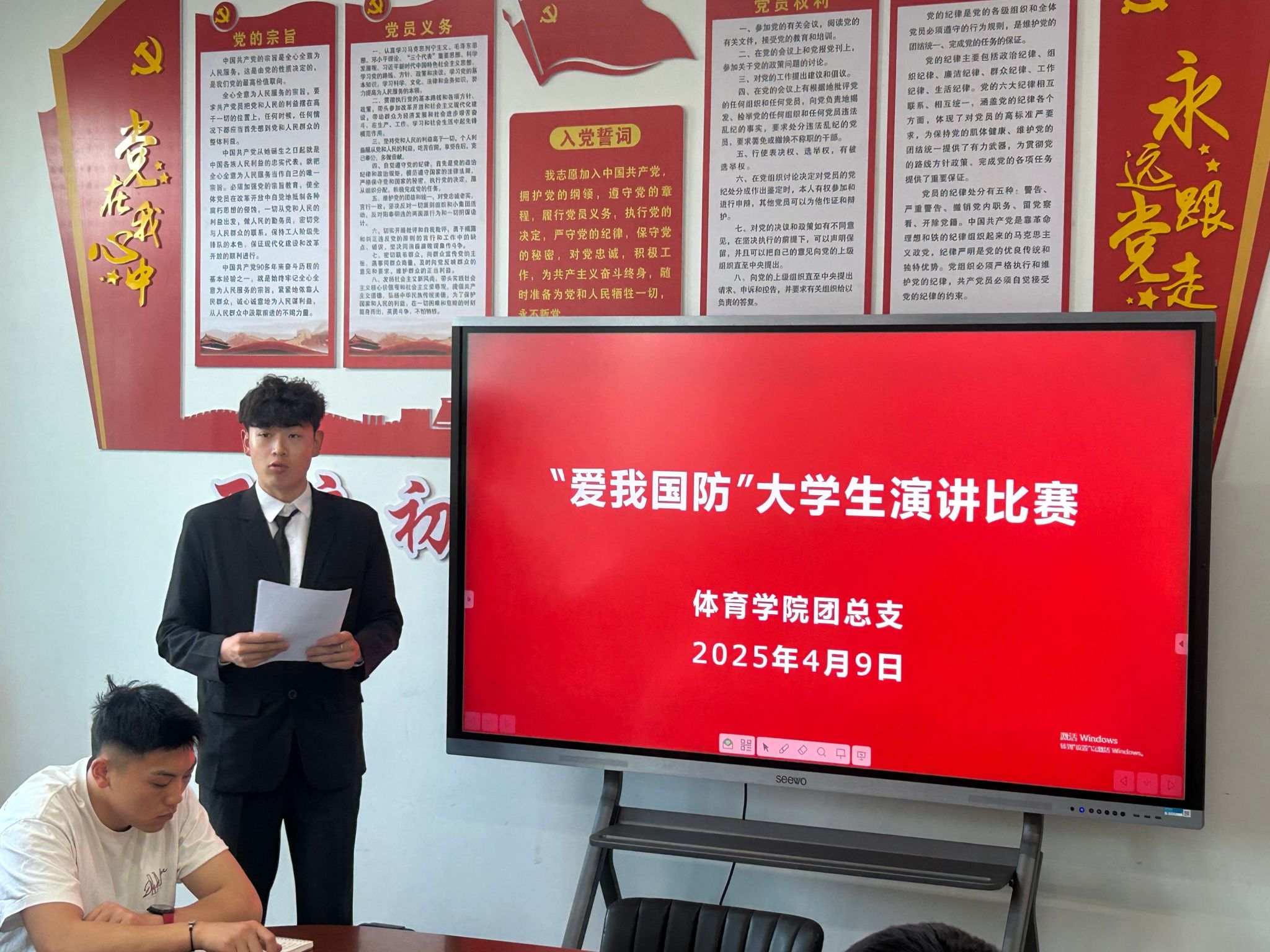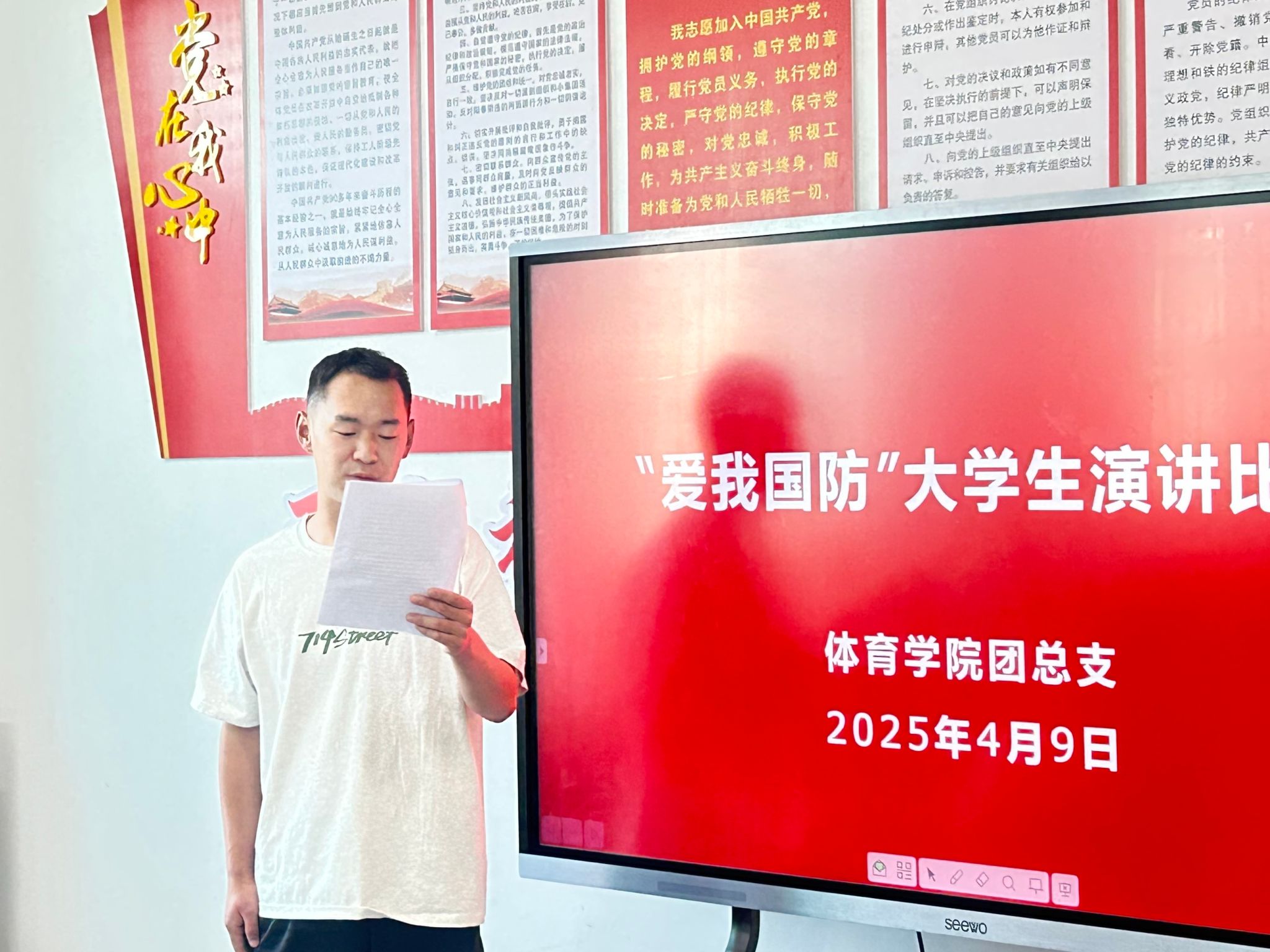 青春热血铸军魂,国防强音振人心。为深入贯彻落实习近平总书记关于加强全民国防教育的重要指示精神,充分发挥党建引领作用,推动党团共建深度融合,4月9日,欧冠官方网站学生党支部、团总支成功举办“爱我国防” 主题演讲比赛。进入决赛的4名选手同台竞技,以铿锵话语诠释新时代青年的国防担当,为在场师生带来一场震撼心灵的精神洗礼。