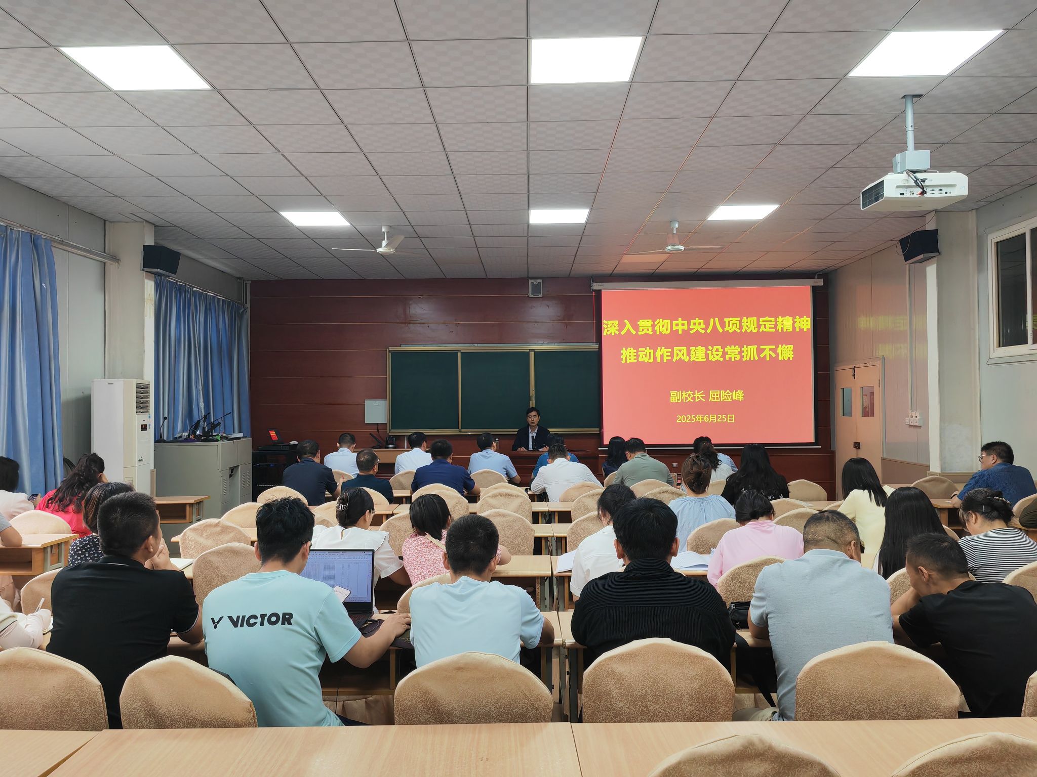 为持续巩固拓展主题教育成果,深入推进全面从严治党,切实强化党员干部作风建设,6月25日下午,副校长屈险峰以《深入贯彻中央八项规定精神,推动作风建设常抓不懈》为题,为欧冠官方网站、数统学院、学工部、保卫部、工会、团委、后勤处和信管中心全体党员干部讲授专题党课。