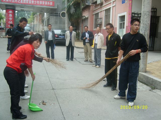 按照学院党委“关于印发《欧冠官方网站迎接省级卫生城市验收工作方案》的通知”精神,在学工部和体育系党总支的统一安排下,2010年9月30日上午,体育系辅导员梁鸿带领2007级学生党员、预备党员和入党积极分子共21人参加了“迎国庆”环境卫生清扫活动。