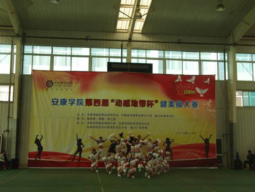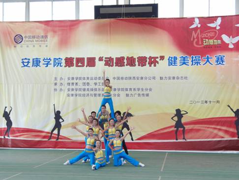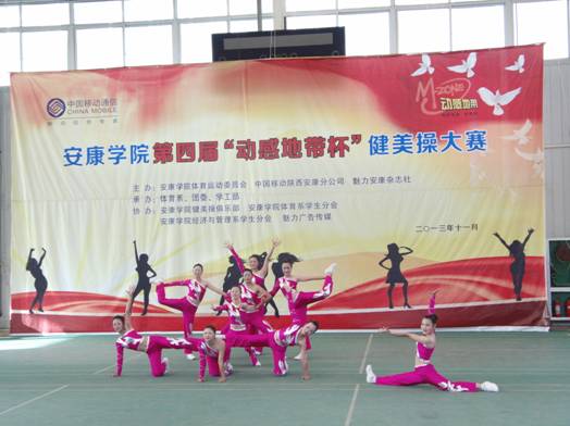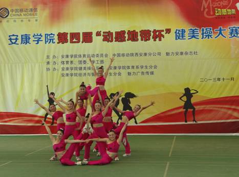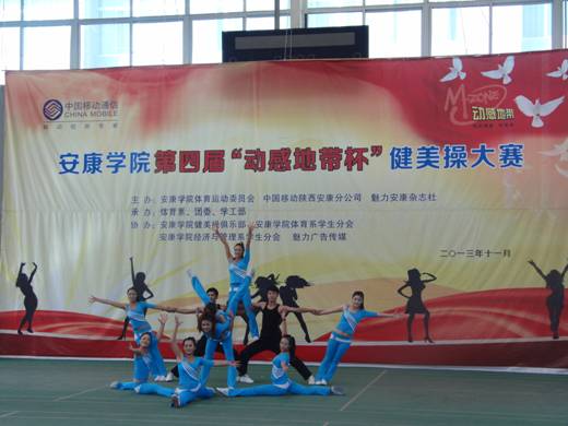 2013年11月27日下午14点30分,由欧冠官方网站体育运动委员会、中国移动安康分公司、魅力安康杂志社主办的欧冠官方网站第四届“动感地带”杯健美操大赛在江南校区体育馆正式拉开帷幕。欧冠官方网站党委副书记、欧冠官方网站体育运动委员会主任胡鸿晓教授致辞并宣布比赛开幕,安康移动城区分公司副总经理吕红梅女士,各院系党总支书记,团委、学工部、保卫处等部门领导也莅临了此次活动。体育运动委员会秘书长、体育系主任冯德学主持开幕式。