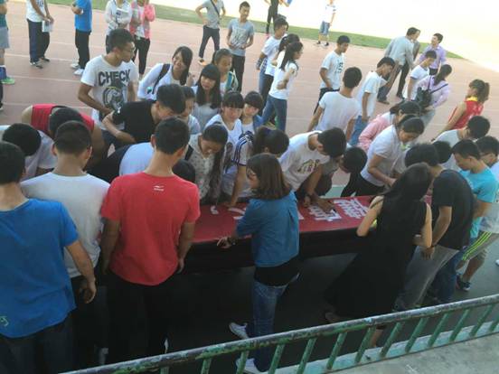 2015年5月8日下午,在江南校区田径场上,体育系举办了以“文明用网,健康成长,提升修养,放飞梦想”为主题的体育系青年网络文明志愿者启动仪式,欧冠官网团委副书记李光梓、体育系系党支部书记沈军、辅导员郭建鹏、蔡龙老师和全系学生参加了此次活动。