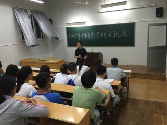 会议由郭建鹏老师主持,并邀请了2015年在研究生入学考试中取得优异成绩的四位考研学生代表到场交流分享考研经验。刘秦飞同学认为考研要早下决心,早准备,明确报考学校,制定计划时间表,严格训练自己,英语作为体育生考研最弱点一定要提前准备;李晓同学就自己考研准备时间表以及考研的复习方法和同学们做了分享;朱妍同学建议考研同学应建立起考验团队,互相分享信息、复习材料,互相勉励,互相加油;张娇同学和同学们分享了自己本年度考研一些好的复习资料,以及复试应注意的问题。