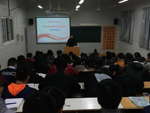 为保证教育教育效果,聘请了多年从事学生教育管理的工作人员分年级开展教育专题讲座。院党总支书记沈军老师、院长冯德学老师、学工办主任郭建鹏老师分别于12月15日、19日、21日在6407教室针对2014级、2015级、2016级体育教育专业学生召开了专题教育会。