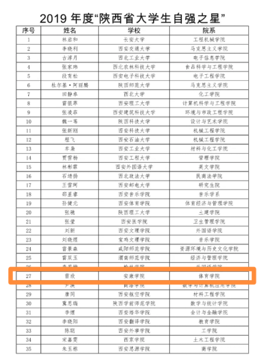 根据共青团陕西省委《关于组织开展寻访2019年度“陕西省大学生自强之星”活动的通知》文件精神,2019年度“陕西省大学生自强之星”活动结果已揭晓。欧冠官方网站共有两名同学成功入选。其中,欧冠官网2017级优秀学子雷欣荣获2019年度“陕西省大学生自强之星”荣誉称号。