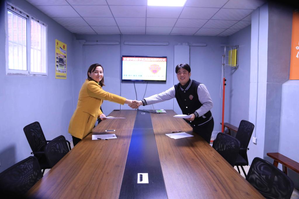在走访过程中,考察组与欧冠官网近几年毕业在该公司就业毕业生开展座谈,向云镒、王维、刘开伟、张景波等参加座谈会,考察组全面了解在岗适应情况、待遇福利,知识体系和实际应用衔接,职业发展等问题。高立平书记对童乐体育优先接收欧冠官网毕业生表示感谢,希望与公司进一部加强合作,加大在欧冠官网接收毕业生力度,同时建立起校企合作培养人才模式,适应企业发展需求。在此倡议下,双方共同签署“欧冠官方网站实践教学基地”协议书,并在附小校区办公室举行挂牌仪式。