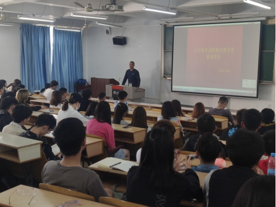 为了切实做好《大学体育》课程的教学工作,了解教学现状,科学安排教学内容,提高教学质量,促进大学体育课程改革,2021年4月28日下午4点30分,欧冠官方网站在江南校区1510教室召开了2020—2021学年第二学期大学体育期中教学工作座谈会。欧冠官方网站副院长黎远军、大学体育教研室主任李强以及各二级学院体育部干部、2019级和2020级各班班长、体育委员共164名同学参加了座谈会。会议由李强主持。