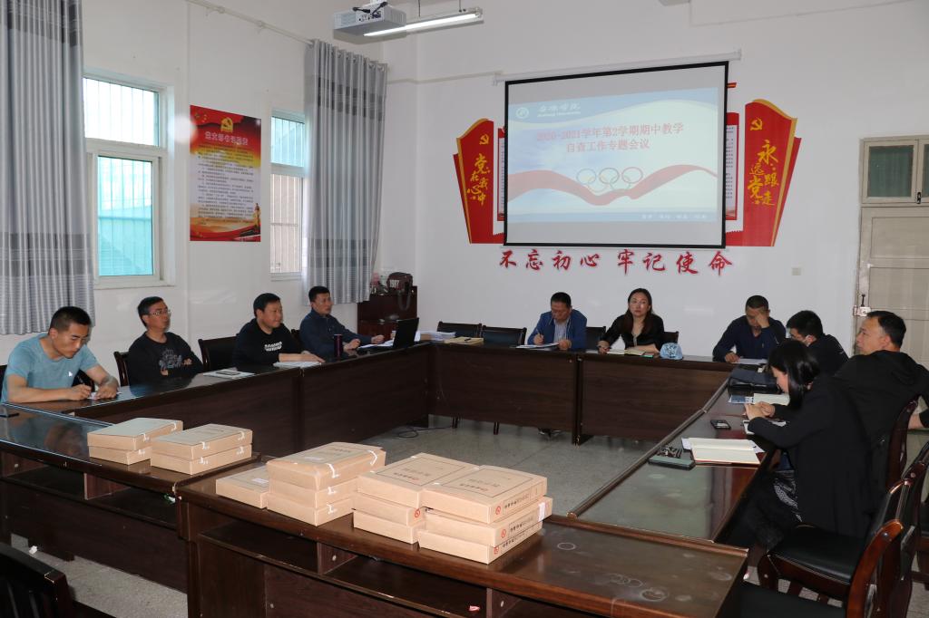 4月29日下午,欧冠官方网站在体育馆一楼会议室召开2020-2021学年第2学期期中教学工作专题会议。欧冠官方网站领导班子非常重视本次期中教学工作自查工作,学院领导班子、两办主任、系(教研室)主任、教学秘书等参加了本次专题会议。会议由欧冠官方网站教学副院长郭西魁同志主持。