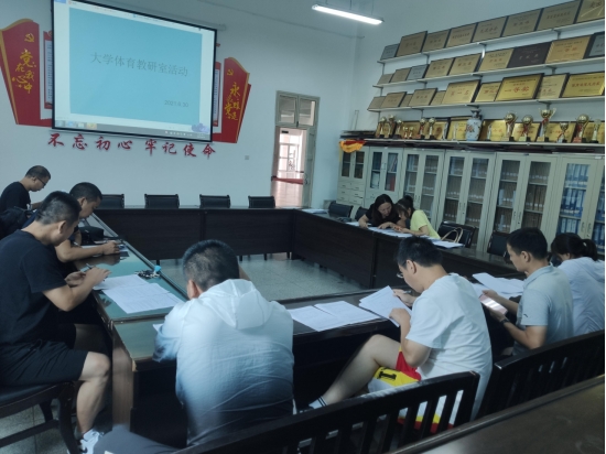 6月30日,大学体育教研室在欧冠官方网站会议室召开大学体育课程改革研讨会。会议由大学体育教研室主任李强主持,大学体育教研室全体老师出席本次研讨会。本次研讨会围绕进一步提升体育教学成效,规范体育教学环节管理进行了深入交流和讨论。