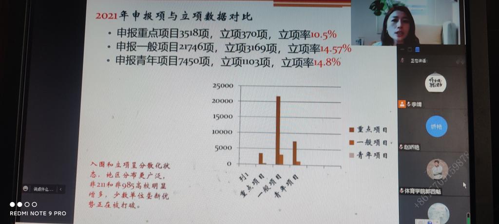 为提升欧冠官方网站教师科研水平,帮助教师做好各项社会科学项目的申报,2022年5月14日-15日,体育系组织欧冠官方网站全体中青年教师参加“全国高校社科基金项目申报暨中青年教师科研能力提升”专题研修班线上培训。
