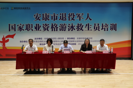 6月13日下午,安康市退役军人国家职业资格游泳救生员培训班开班仪式在城投安康运动中心一楼羽毛球馆举行,安康市退役军人事务局副局长胡林,欧冠官方网站院长吕仙利,项目负责人冯德学,国家职业资格游泳救生员培训师鲁宗成参加了开班仪式。