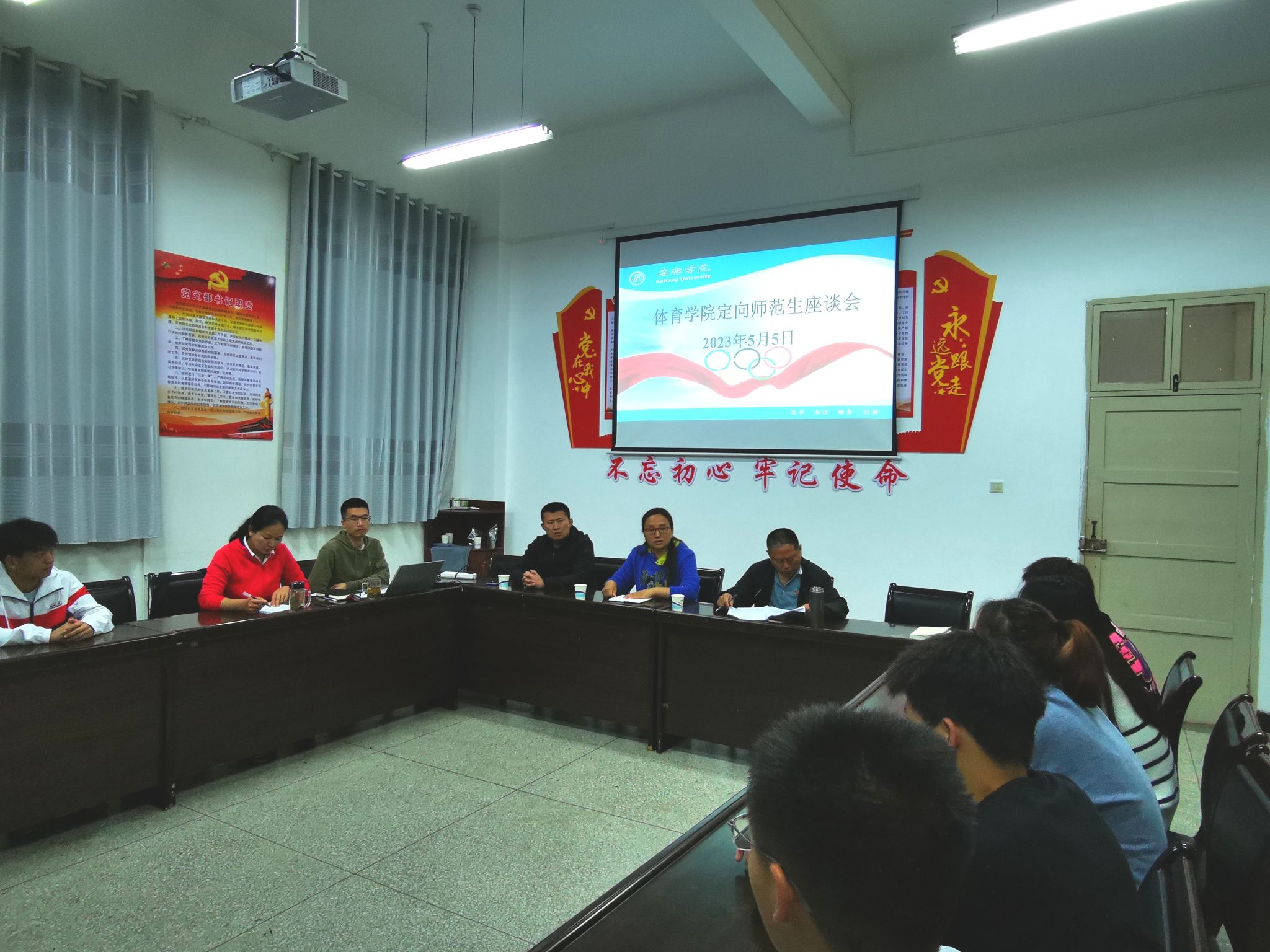 5月5日晚,欧冠官方网站在体育馆会议室分别召开定向师范生和职业单招生座谈会。欧冠官方网站院长吕仙利、党总支书记高立平、副院长郭西魁、学工办主任王立、体育系主任李靖出席了此次座谈会。会议由吕仙利院长主持。