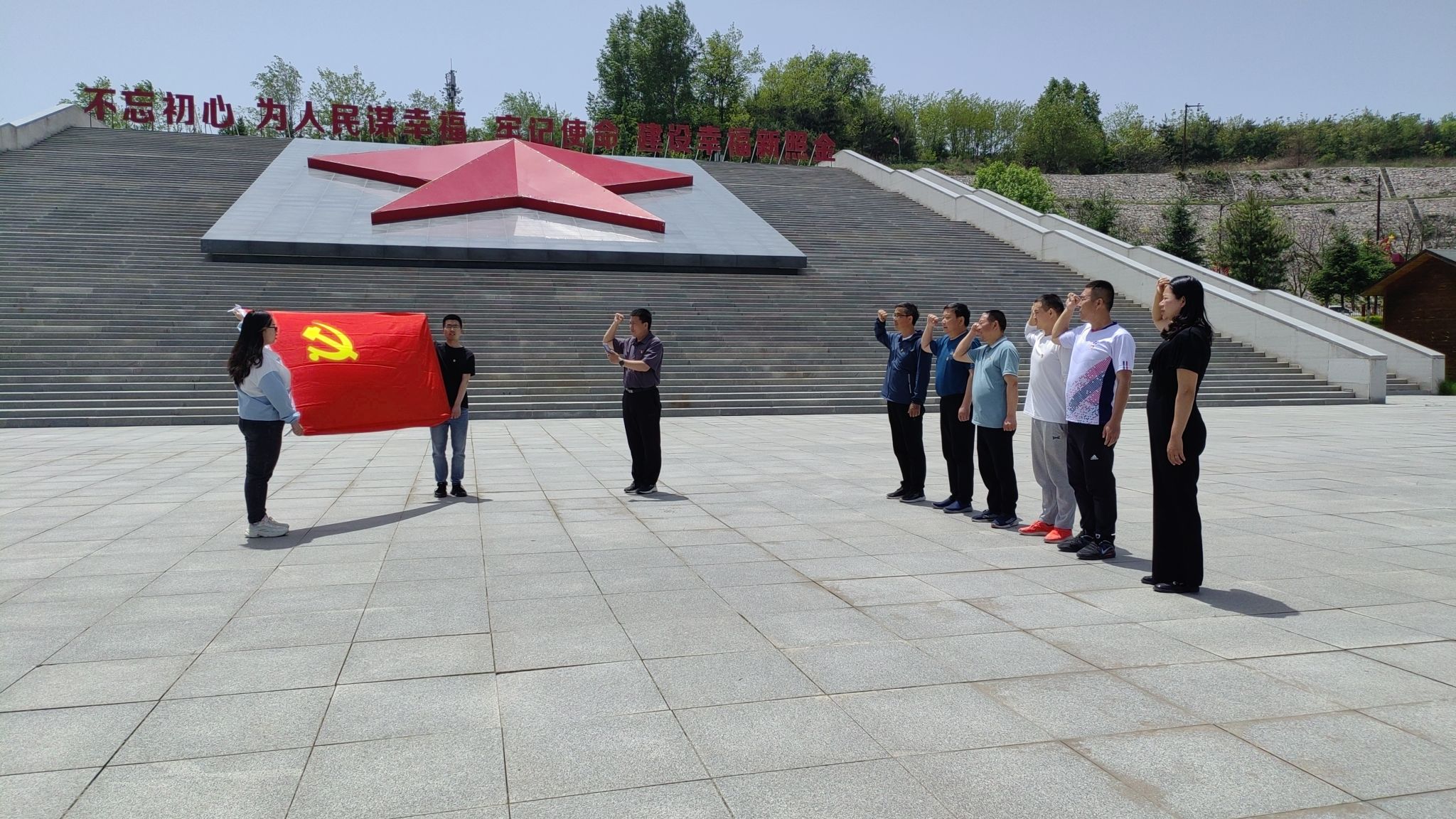 14日大家一起参观了薛家寨战斗遗址、重走红军路,亲身体验老一辈无产阶级革命家艰苦卓绝的战斗历程,了解备战情况。参观结束后组织全体党员重温入党誓词,面对鲜红的党旗,党员高举右手庄严宣誓,砥砺初心、牢记使命、坚定理想信念,传承红色基因,立足自身岗位担当作为,以更好的姿态奋进新征程,做出新贡献。