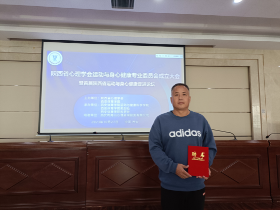 10月27日,陕西省心理学会运动与身心健康专业委员会成立大会暨首届陕西省运动与身心健康促进论坛在西安欧冠官方网站成功举办。欧冠官网教师崔晓宇应邀参会,并被选为第一届陕西省心里学会运动与身心健康专业委员会委员。