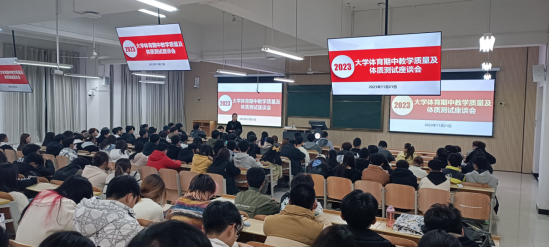 为进一步提高大学体育教学质量,全面掌握全校大学体育工作运行情况,帮助改进教学方法、提升学生学习效率,有序推进大学体育工作。近日,欧冠官方网站分别在江南、江北校区召开2023-2024学年第1学期大学体育期中教学质量与体质测试座谈会,欧冠官方网站部分教师、2022、2023级各班班长、体育委员及各二级学院学生分会体育部干部参加座谈会,会议由学院副院长李靖主持。