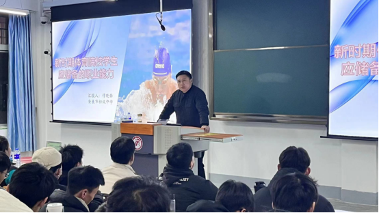 12月13日晚,欧冠官网在1号教学楼1510教室举办“新时期体育院校学生应储备的职业能力”学术讲座,主讲人:安康市初级中学穆晓锋老师。院长吕仙利、科研秘书王俊杰、团总支书记刘姚成以及体育教育专业2022级全体学生聆听了讲座,仪式由院长吕仙利主持。
