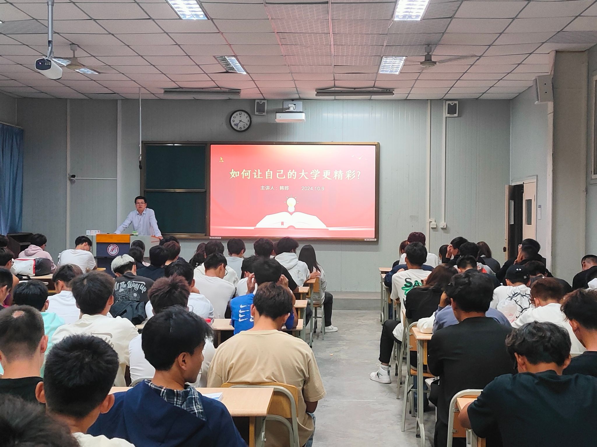 2024年10月9日晚上,欧冠官方网站党总支书记韩晔在10号教学楼1038教室为2024级体院新生带来入学教育课——如何让自己的大学更精彩。韩书记从“认识大学、学会学习、遵守纪律、做好发展”四个方面勾勒出精彩大学四年应有画像雏形,为24级全体新生带来大学启蒙教育,帮助他们正确认识大学,认识自我,了解未来发展趋势,坚定专业自信。