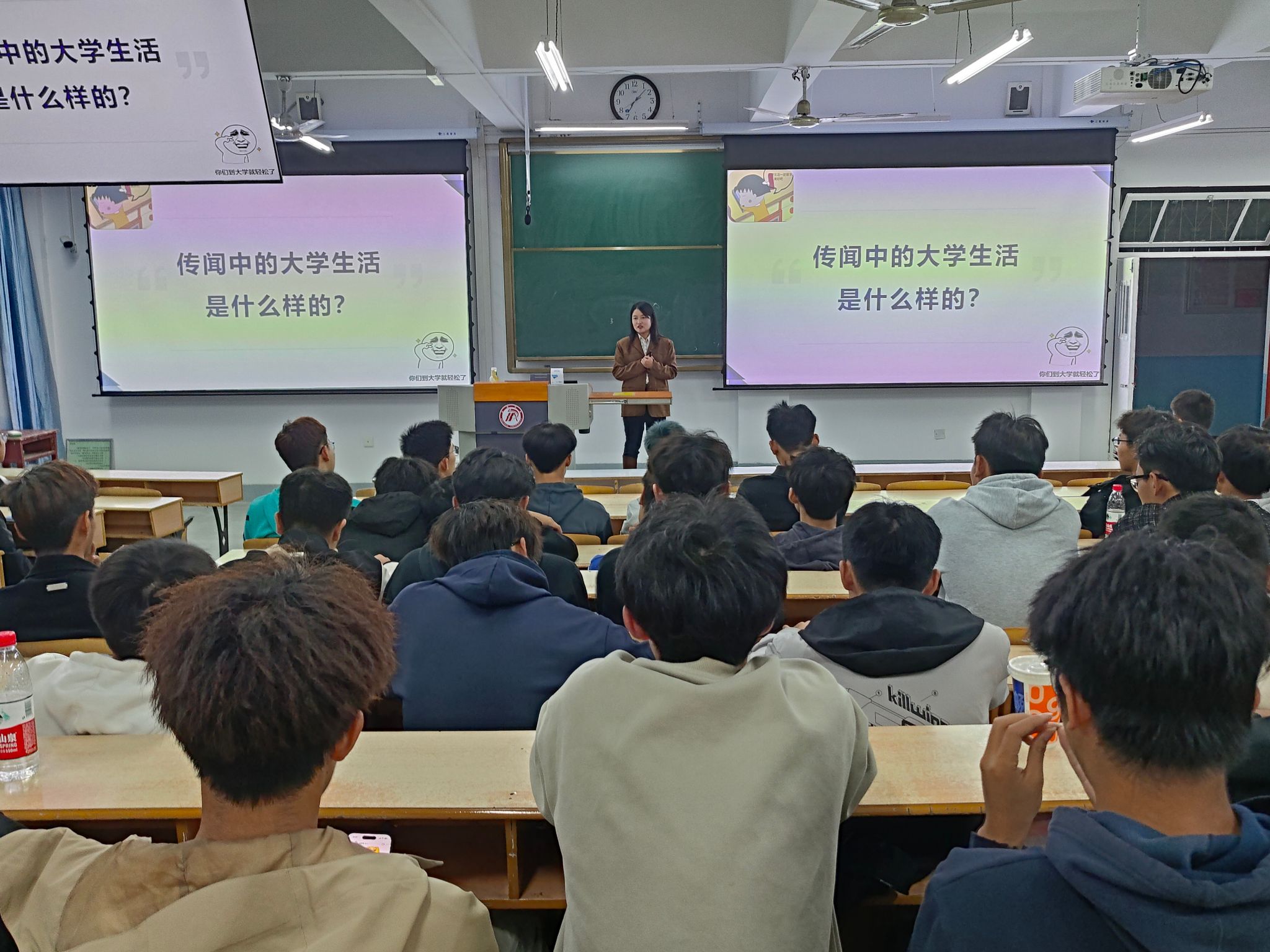为了进一步增强学生心理健康意识,引导学生正确认识和对待心理健康问题,掌握基本的心理健康常识及求助方法,10月22晚,欧冠官网特邀大学生心理健康教育中心主任柯小敏在1510教室为24级新生讲授心理健康课,柯老师结合大学生的心理特点、大学新生的常见适应性问题等方面制作宣讲内容,从新环境、新挑战、心接纳、心成长、心健康五个方面进行专业讲述,纪律严格,讲解精彩,课堂氛围浓厚,讲解最后全场致以热烈的掌声。