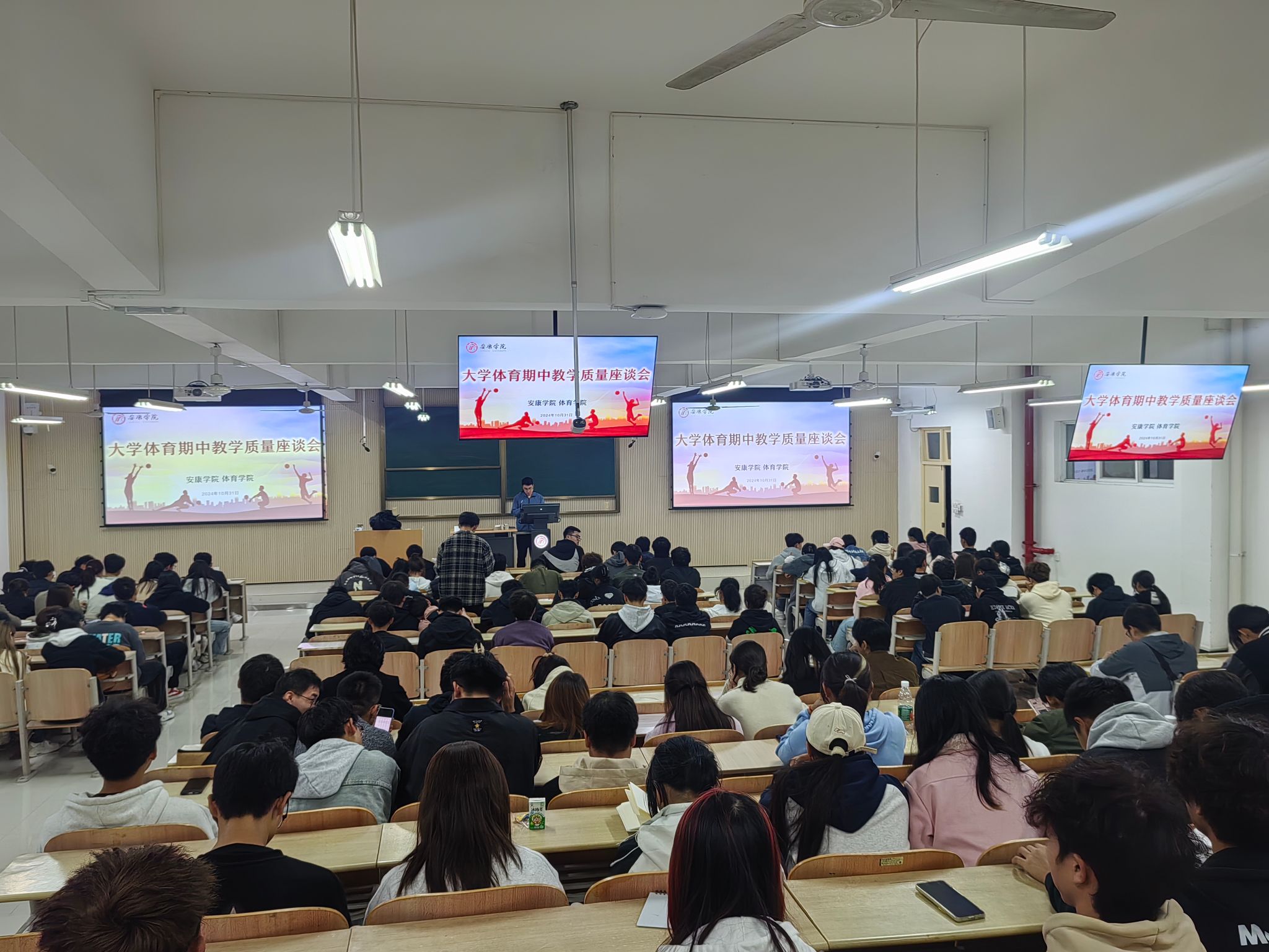 为进一步提高大学体育教学质量,全面掌握全校大学体育工作运行情况,帮助改进教学方法、提升学生学习效率,有序推进大学体育工作。2024年10月31日和11月1日,欧冠官方网站分别在江南、江北校区召开2024-2025学年第1学期大学体育期中教学质量座谈会,欧冠官方网站副院长李靖、欧冠官方网站教学办主任赵娇艳、大学体育教研室副主任王俊杰及各二级学院学生会体育部干部、2023级、2024级各班班长、体育委员等学生代表参加座谈会。会议由大学体育教研室副主任王俊杰主持。