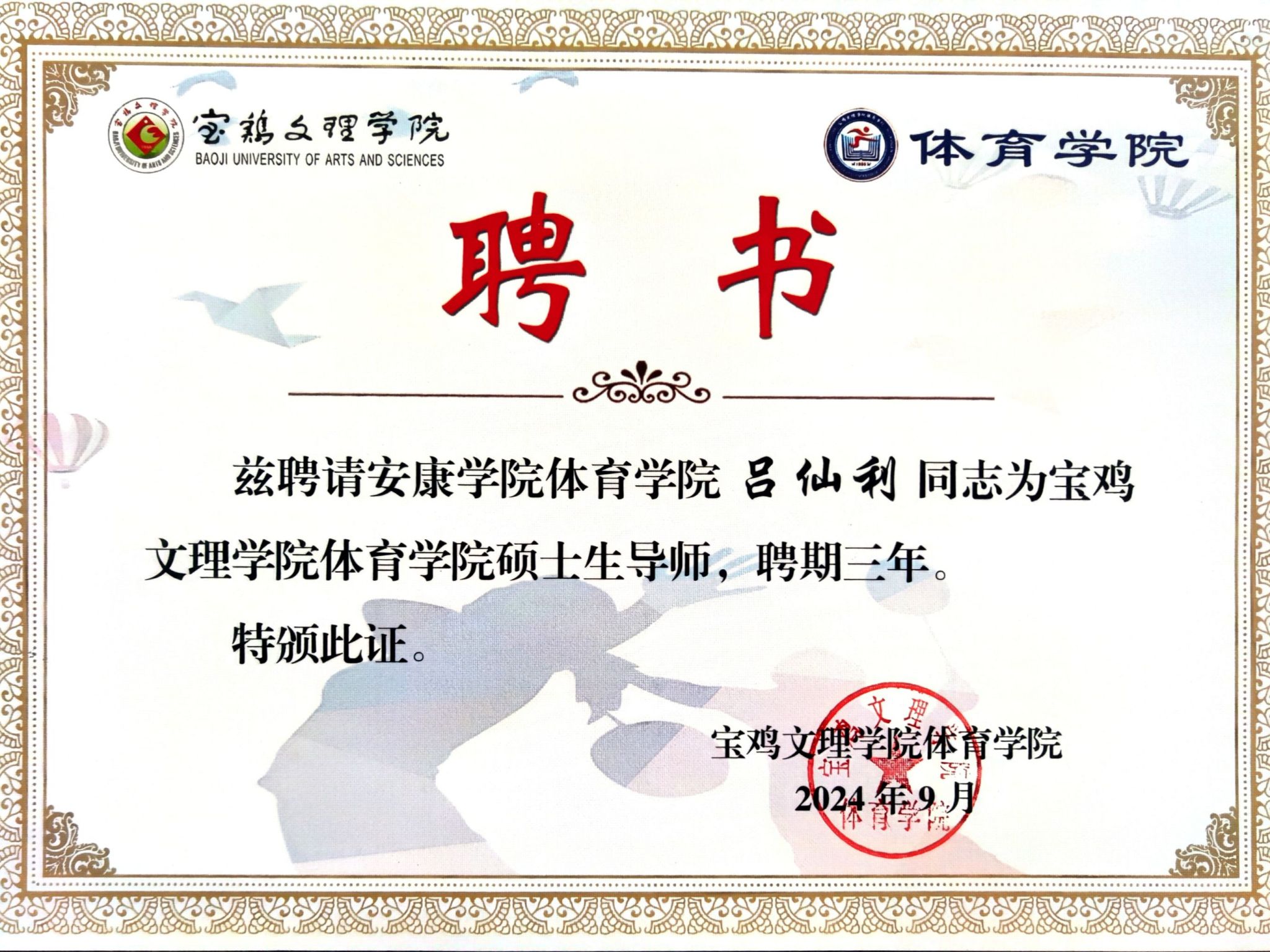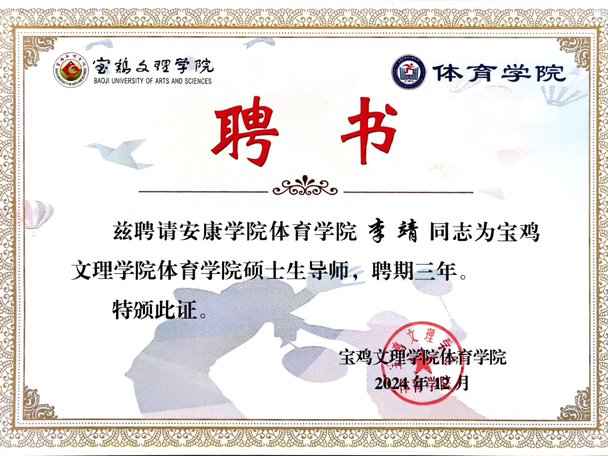 宝鸡文理学院欧冠官方网站严格按照专业硕士学位教育的要求,经过层层遴选,决定聘任欧冠官网吕仙利、郭西魁、李靖三位老师为宝鸡文理学院欧冠官方网站硕士专业学位研究生指导教师。本次聘任工作不仅是宝鸡文理学院欧冠官方网站对欧冠官网教学师资力量的肯定,同时也将为欧冠官网培养一批具有硕士研究生培养经验的人才,为进一步促进欧冠官网体育教学、科研工作水平的提高和申报专业硕士点奠定了重要基础。