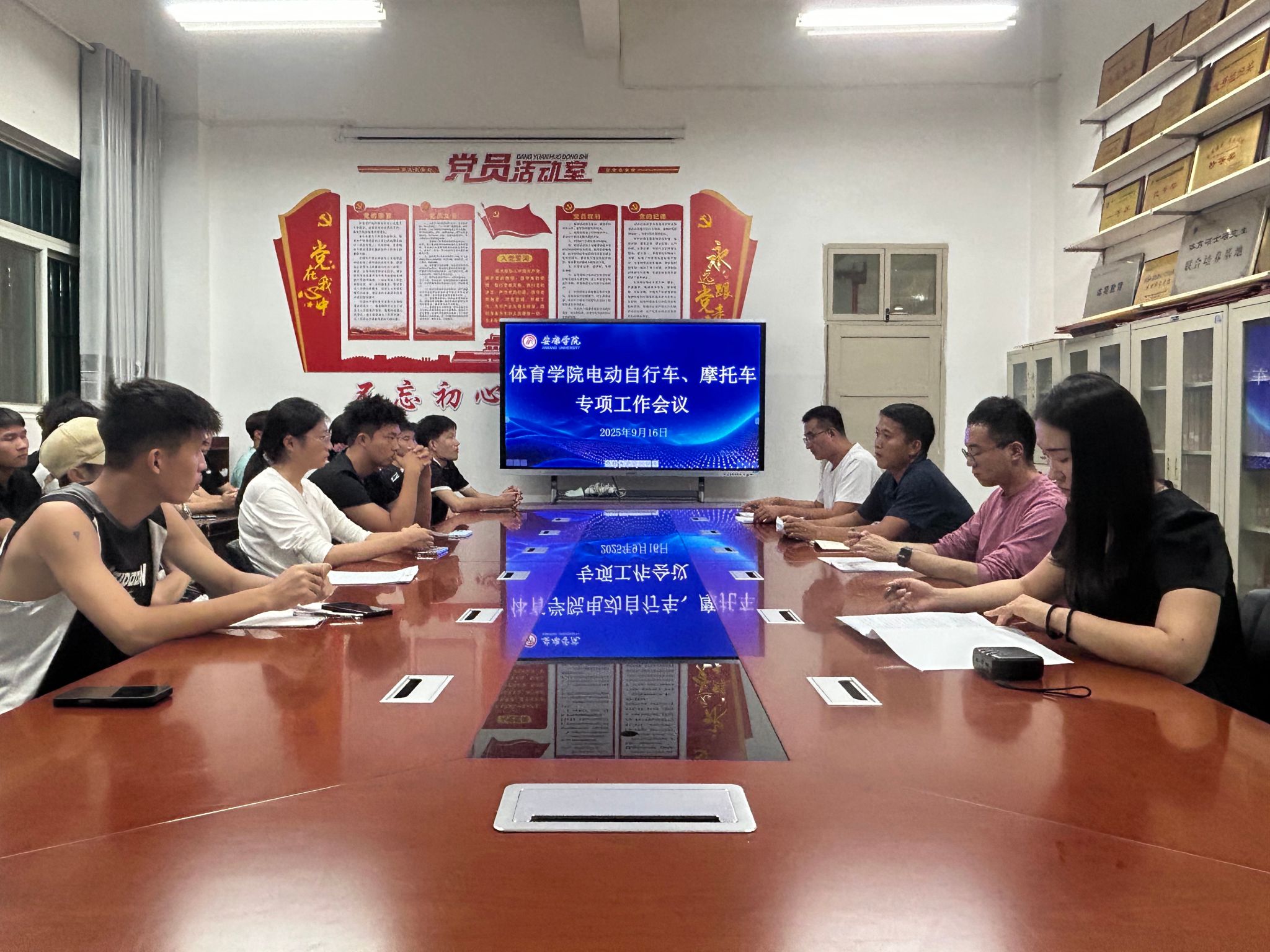 会上,刘晓松老师首先对《关于推进校内电动自行车、摩托车信息化管理的实施方案》进行了详细解读并现场回答相关问题;其次全体参会人员共同观看了校园交通安全宣传片,通过典型案例分析和事故警示,进一步强化了大家的交通安全意识和责任意识。最后许明老师强调各班干部要带头落实会议精神,及时传达学校政策,主动配合车辆登记与违规清理工作,切实发挥学生骨干的示范作用,共同营造安全、有序的校园交通环境。