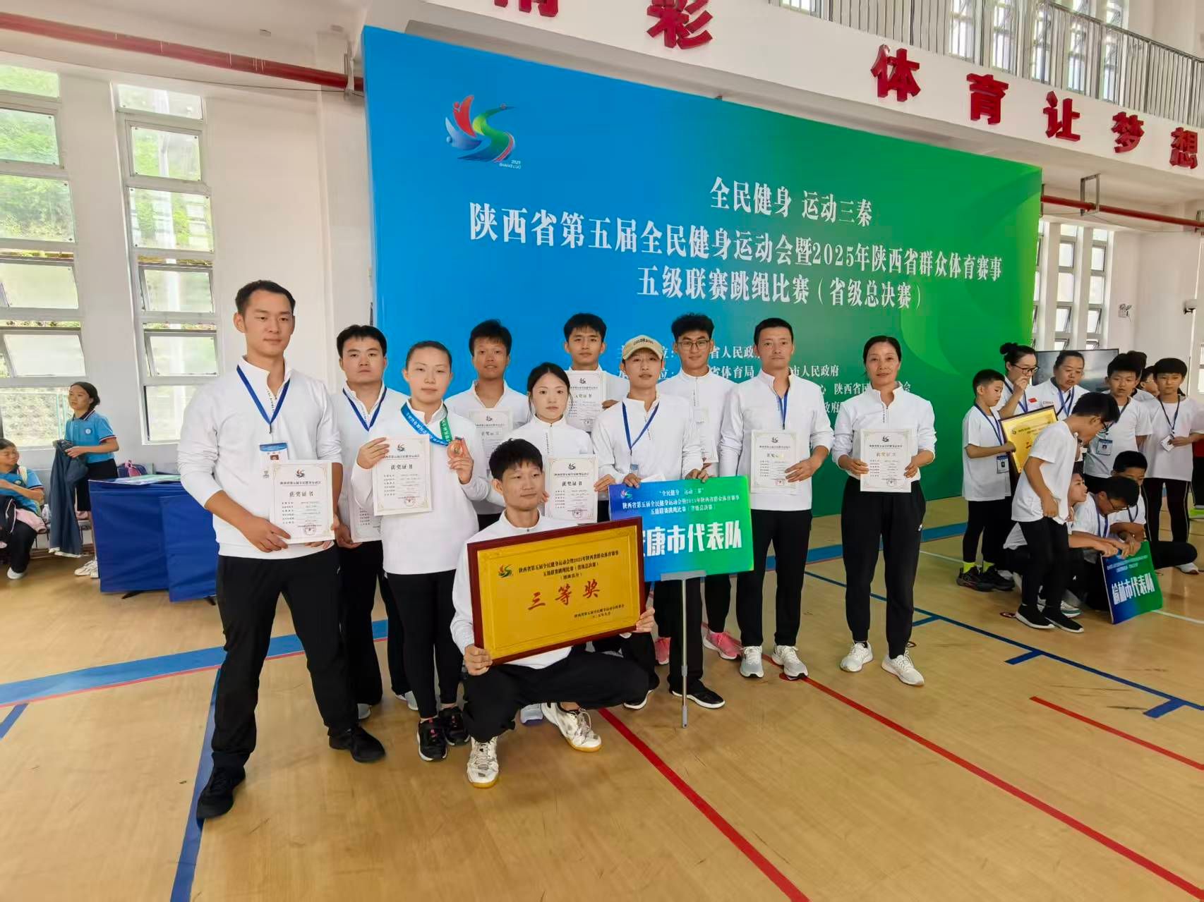 9月27日下午,由陕西省人民政府主办的陕西省第五届全民健身运动会暨2025年陕西省群众体育赛事五级联赛跳绳比赛(省级总决赛)在商洛市柞水县圆满落幕。欧冠官网跳绳队首次代表安康市征战该项省级赛事,便在与包括国家跳绳队在内的强劲对手同场竞技中脱颖而出,荣获团体三等奖和多个单项奖项,为校争光、为安康添彩!