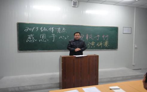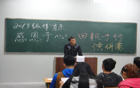 201311211012自习室,我系隆重举行了本年度“感恩于心实践于行”主题演讲赛决赛。体育系2013级全体学生参加,体育系学生会担任评委,体育系团总支书记郭建鹏老师出席。