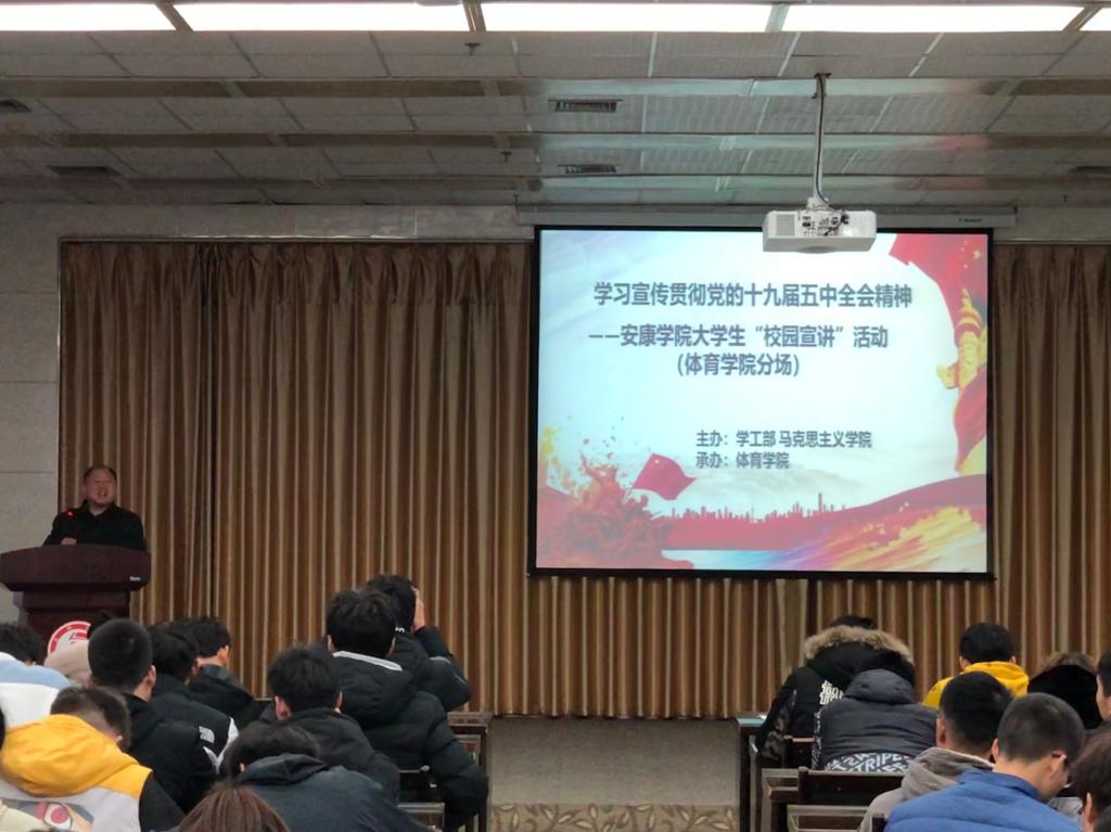 为深入学习宣传贯彻党的十九届五中全会精神,12月23日,由学工部、马克思主义学院主办,欧冠官方网站承办的学习宣传贯彻十九届五中全会精神大学生宣讲活动在江南校区图书馆报告厅举行,欧冠官方网站党总支书记高立平、团总支书记康梦瑶、入党积极分子、2020级学生共计一百六十余人进行了学习,宣讲由康梦瑶主持。