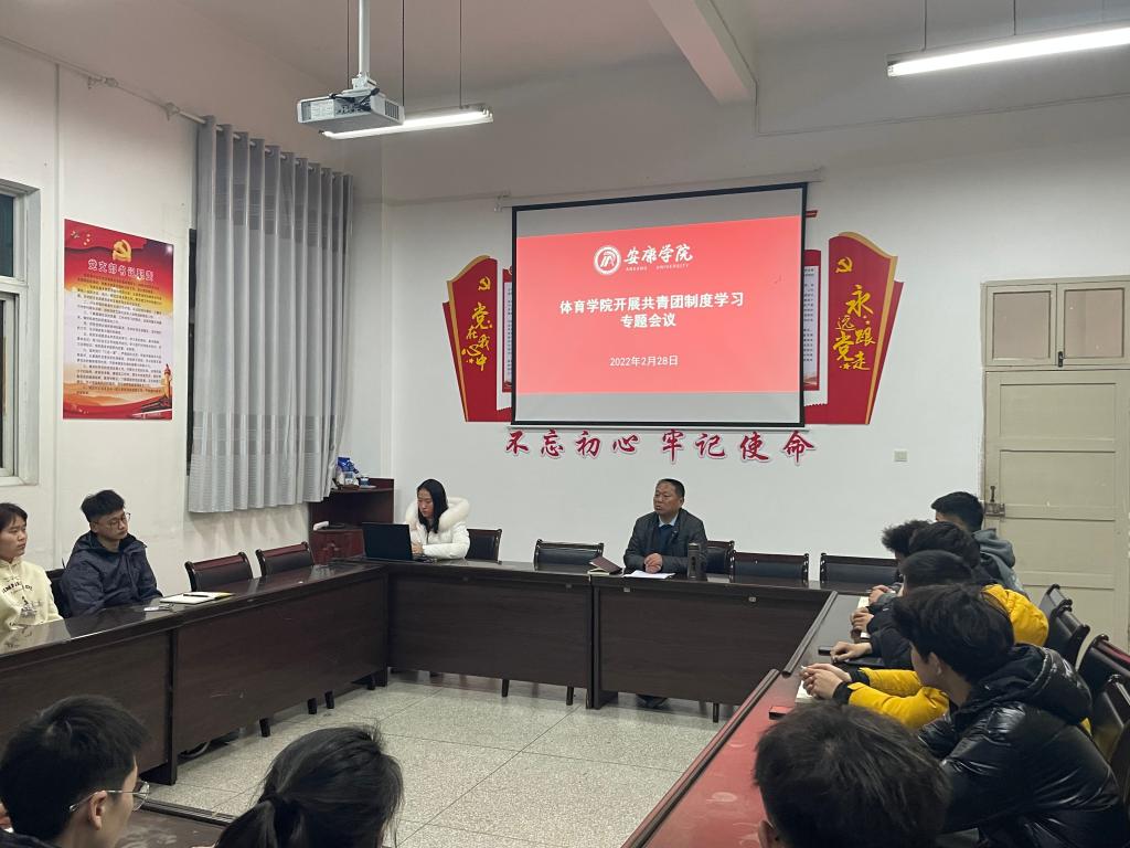 2月28日晚上7点在体育馆1楼会议室,欧冠官方网站团总支组织团学干部开展共青团制度学习专题会议,由欧冠官方网站党总支书记高立平讲团课,重点学习《新时代全面从严治团实施纲要》。团总支书记康梦瑶、团总支、团支部成员参加了会议。会议由康梦瑶主持。