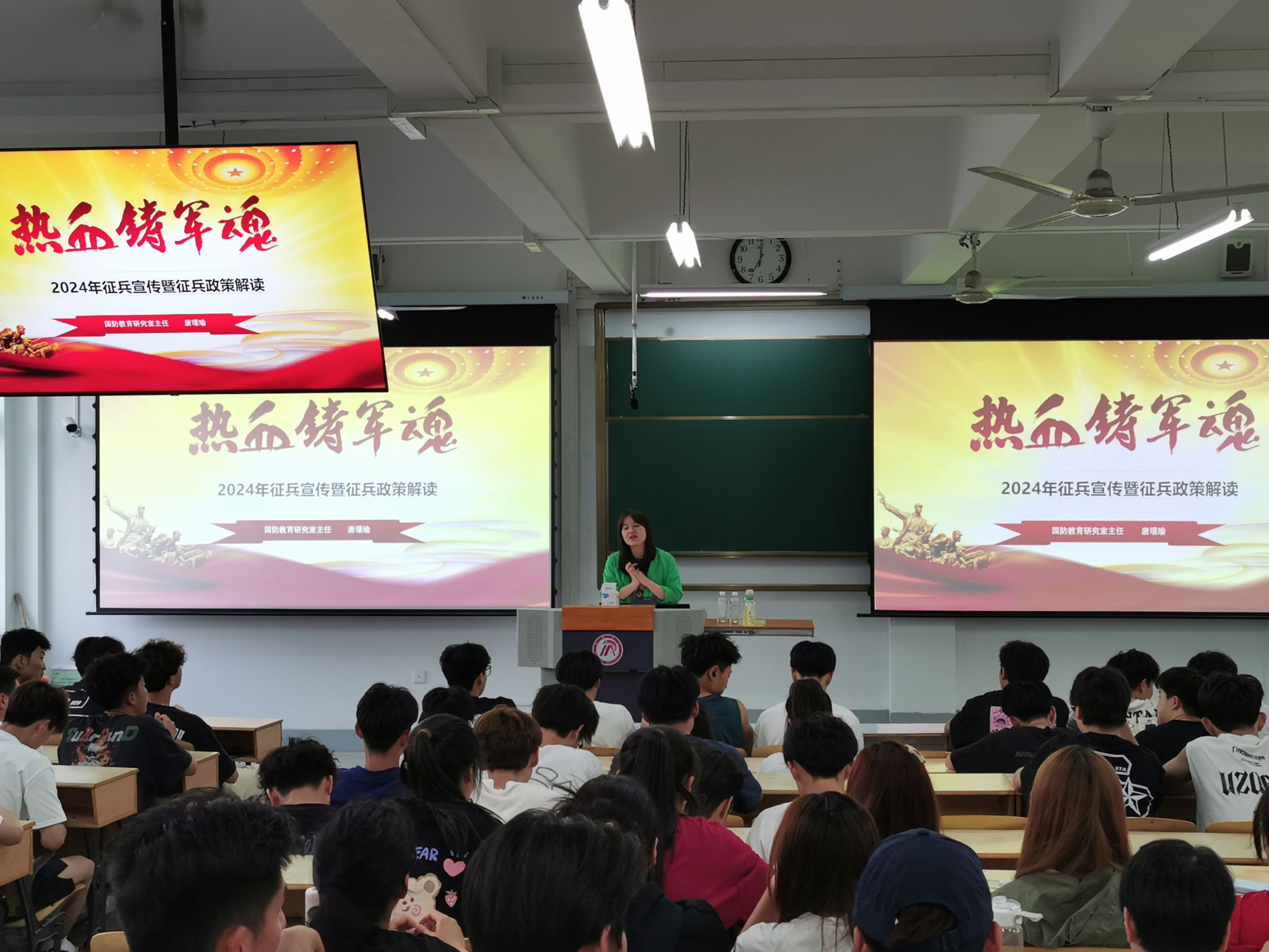 为贯彻落实国家征兵政策,鼓励在校大学生响应国家号召应征入伍,投身军旅,绽放青春。4 月25日晚,我院邀请欧冠官方网站国防教育研究室主任唐璟瑜老师在1510教室开展“热血铸军魂——2024年征兵宣传暨征兵政策解读”主题宣讲活动。学工办主任王立、2023级辅导员刘姚成及2023级全体学生参加了宣讲会。