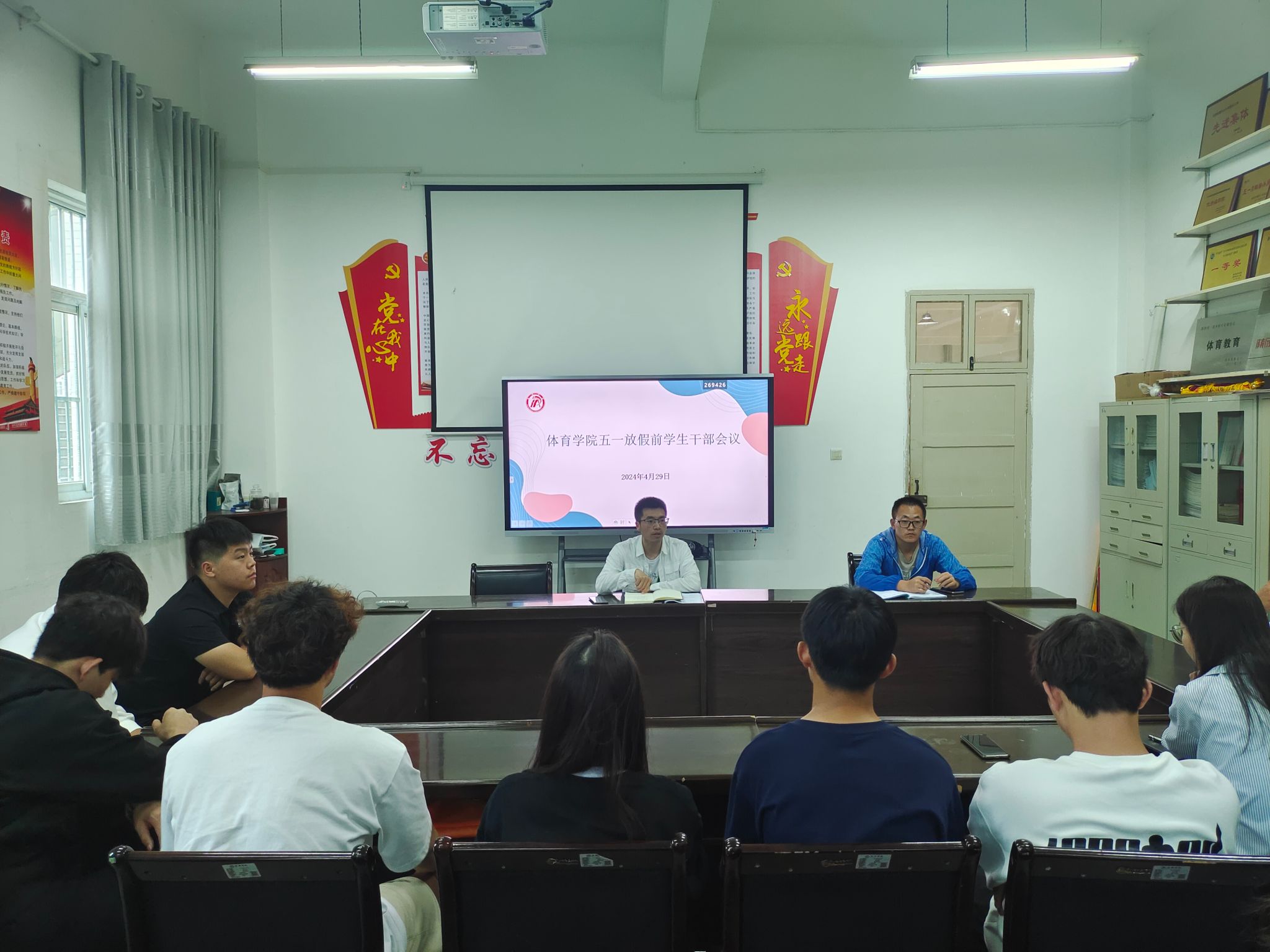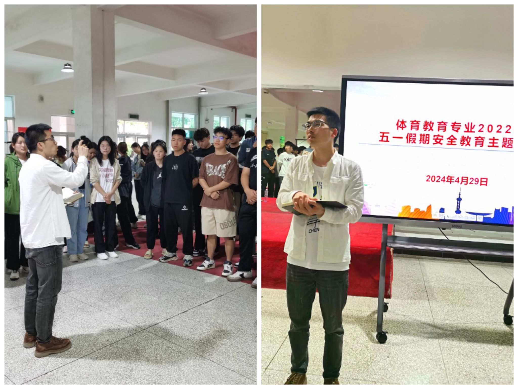 做好安排部署、夯实安全责任。按照学校安全会议要求,欧冠官网领导班子高度重视“五一”假期学生安全,要求各负责同志要强化安全意识、落实安全责任,对放假前的各项工作和假期值班做了详细安排。4月29日中午,欧冠官网学工办主任王立、辅导员刘姚成组织召开了学生干部工作会议。就“五一”放假前离返校登记、假期安全打卡、返校晚点名等工作做了详细安排。会议结束后,各年级辅导员分别组织了召开了主题班会。