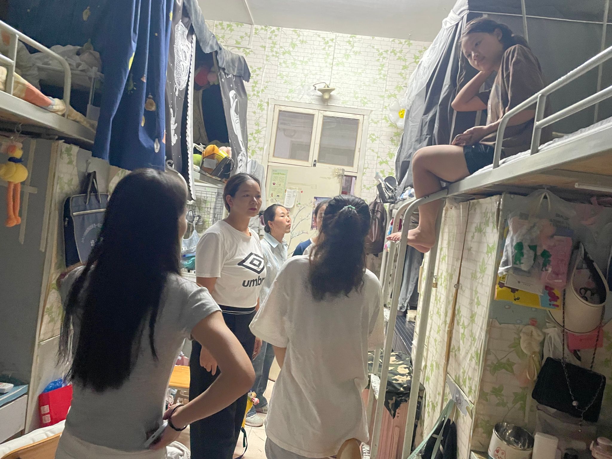 院领导和老师们走访了每一间新生宿舍,每走访一间宿舍都与新生们就大学新环境的适应状况、学习规划等方面与新生亲切交谈。郭院长和王立老师对新生们刚进入校园的状况和感受进行细致询问,了解安顿情况,向同学们告知学工部门老师的办公地点,并告诉他们遇到困难及时寻求老师帮助,提醒大家注意校园安全和防诈骗。同时,学院领导专门查看了宿舍有无安全隐患,并提醒同学们如果存在问题要及时报修。此外,学院领导老师们重视混寝新生的心理疏导,给予了他们更多的关注与关心。