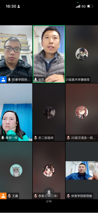 为了切实做好《大学体育》课程的教学工作,了解教学现状,科学安排教学内容,提高教学质量,促进大学体育课程改革,11月4日下午,大学体育教研室利用腾讯会议平台组织召开了2022—2023学年第1学期期中教学质量检查大学体育教学工作学生座谈会。欧冠官方网站院长吕仙利、副院长郭西魁、大学体育教研室主任李强、体质测试中心负责老师张凯、各二级学院体育部干部、2021级和2022级各班班长、体育委员共153名同学参加了座谈会。会议由李强主持。
